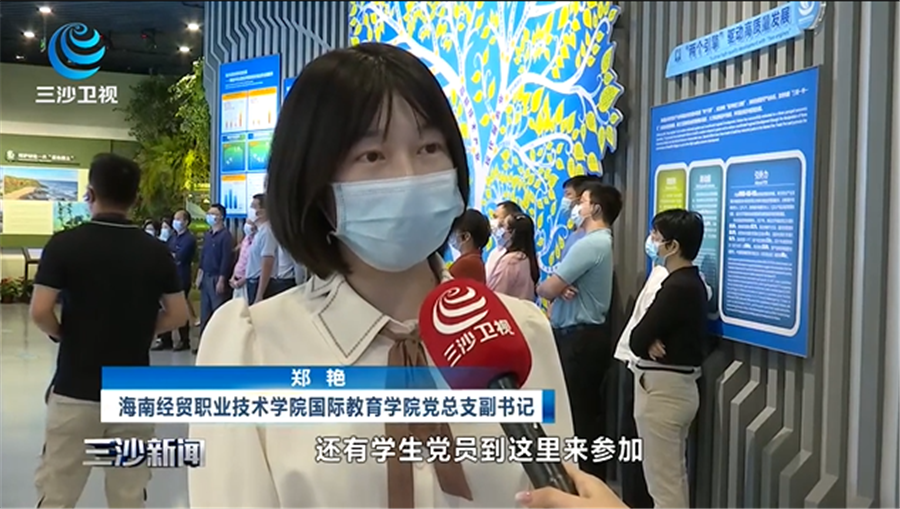通过参观,同志们更加直观地感受到党中央赋予海南全面深化改革开放新使命的重大历史意义,更加坚定立足自身岗位,建功自贸港的信心和决心。党总支副书记郑艳在接受三沙卫视新闻频道记者采访时表示:通过这个自由贸易港建设成果的重要展示窗口,带领学院的教师和学生党员来实地参观,可以让大家看到自贸港建设的清晰蓝图,感受到海南自贸港建设与每个人都息息相关。每个人都应该以“一本三基四梁八柱”战略框架为指引,对标个人岗位和职业理想,做海南自由贸易港建设的亲历者、推动者和参与者。