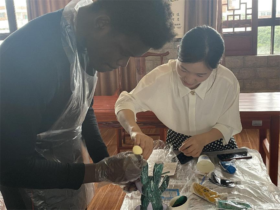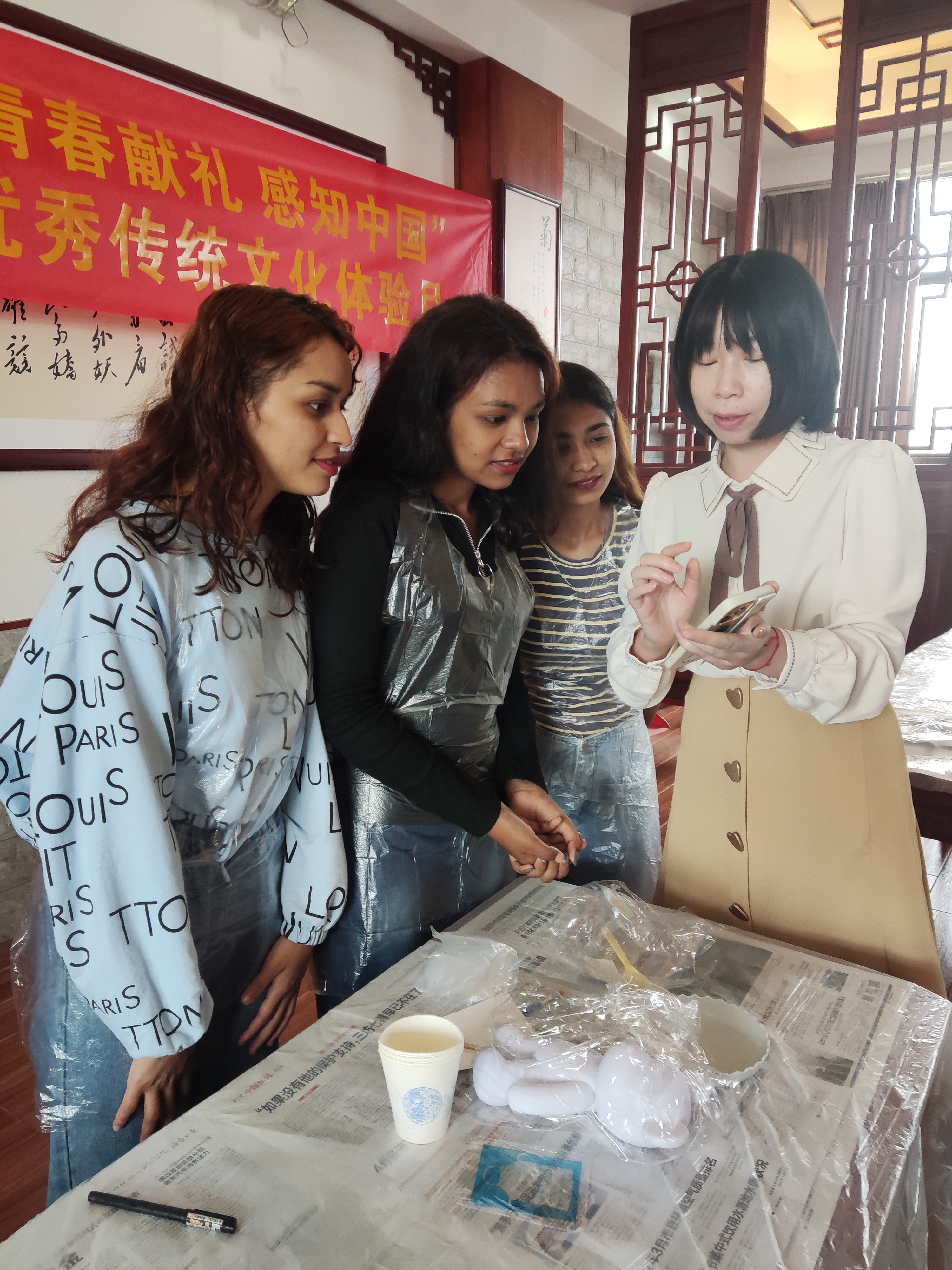 ·感知中国”2022年度中华优秀传统文化体验月第一期活动。国际教育学院党总支副书记郑艳、汉语教研室主任侯萌和辅导员韩笑、肖意出席本次活动开幕式。