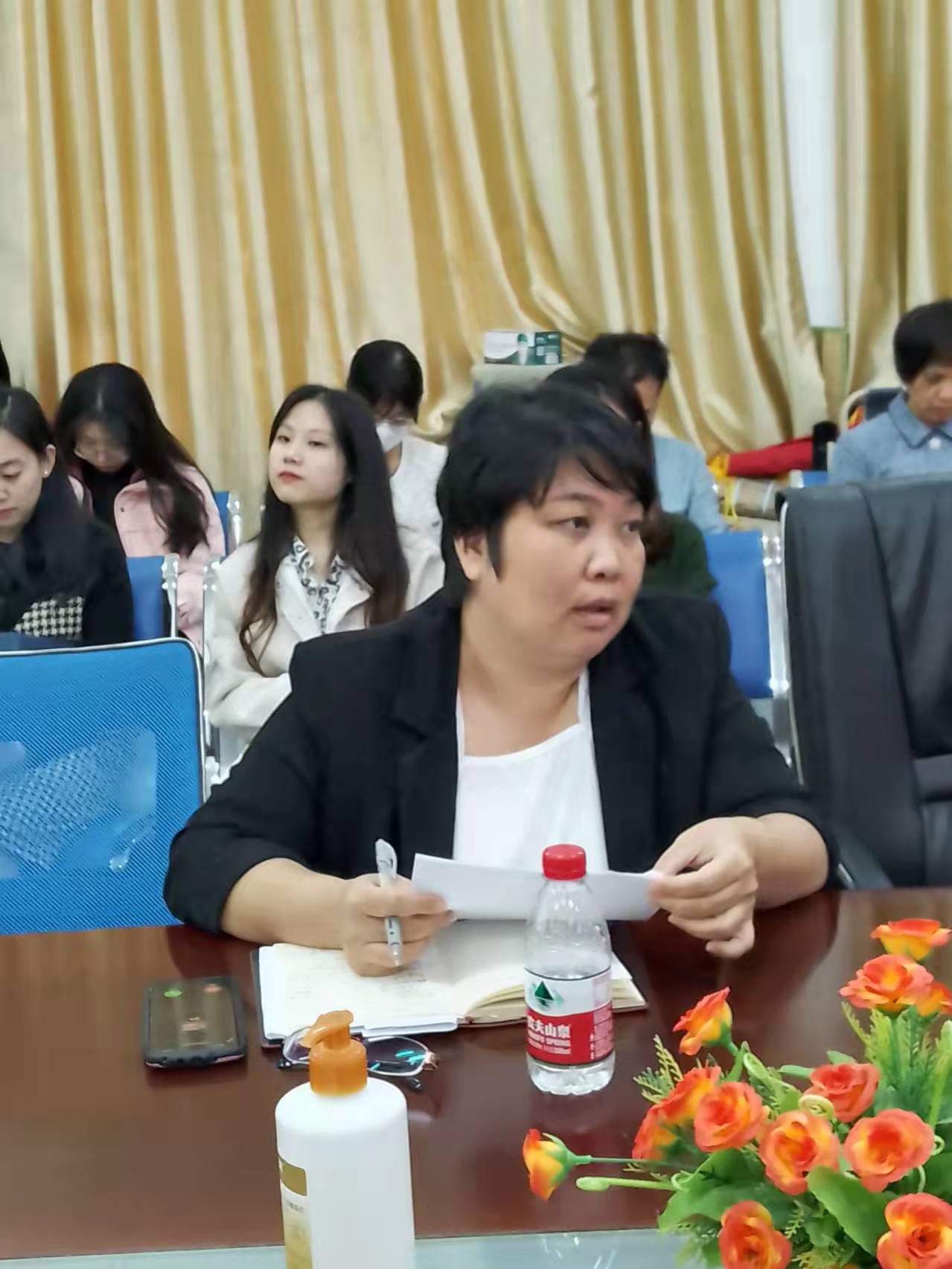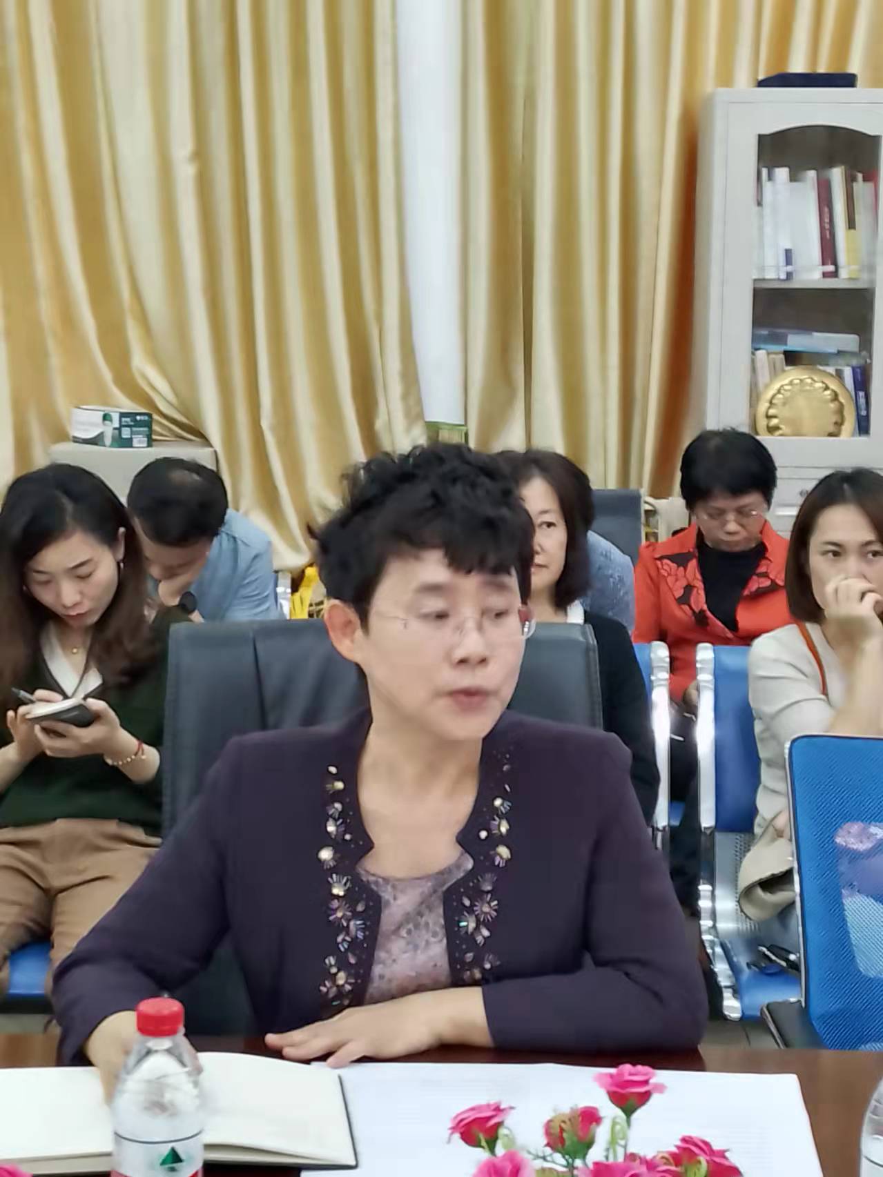 黎瑛副院长从教学方面进行了工作汇报。她指出,第一,本学期首次使用超星学习通进行大学英语统考,虽然整体流程进行平稳,但仍存在监考教师监考不到位、缺少流动监考等问题,需在下一学期进行整改;第二,她强调目前我院在“1+X证书”试点考试方面取得了优异的成绩,通过率达到95%以上,可喜可贺;第三,她鼓励老师们积极参与省级及以上的比赛项目,积极参与到双高双语教材建设当中;最后,黎副院长指出,教师在下学期应积极申报公开课,加强留学生的课堂管理工作,提升上课效果,认真准备教案。在教工党支部建设方面,他还强调下学期重点加强“三会一课”工作,开展更多的党日活动。