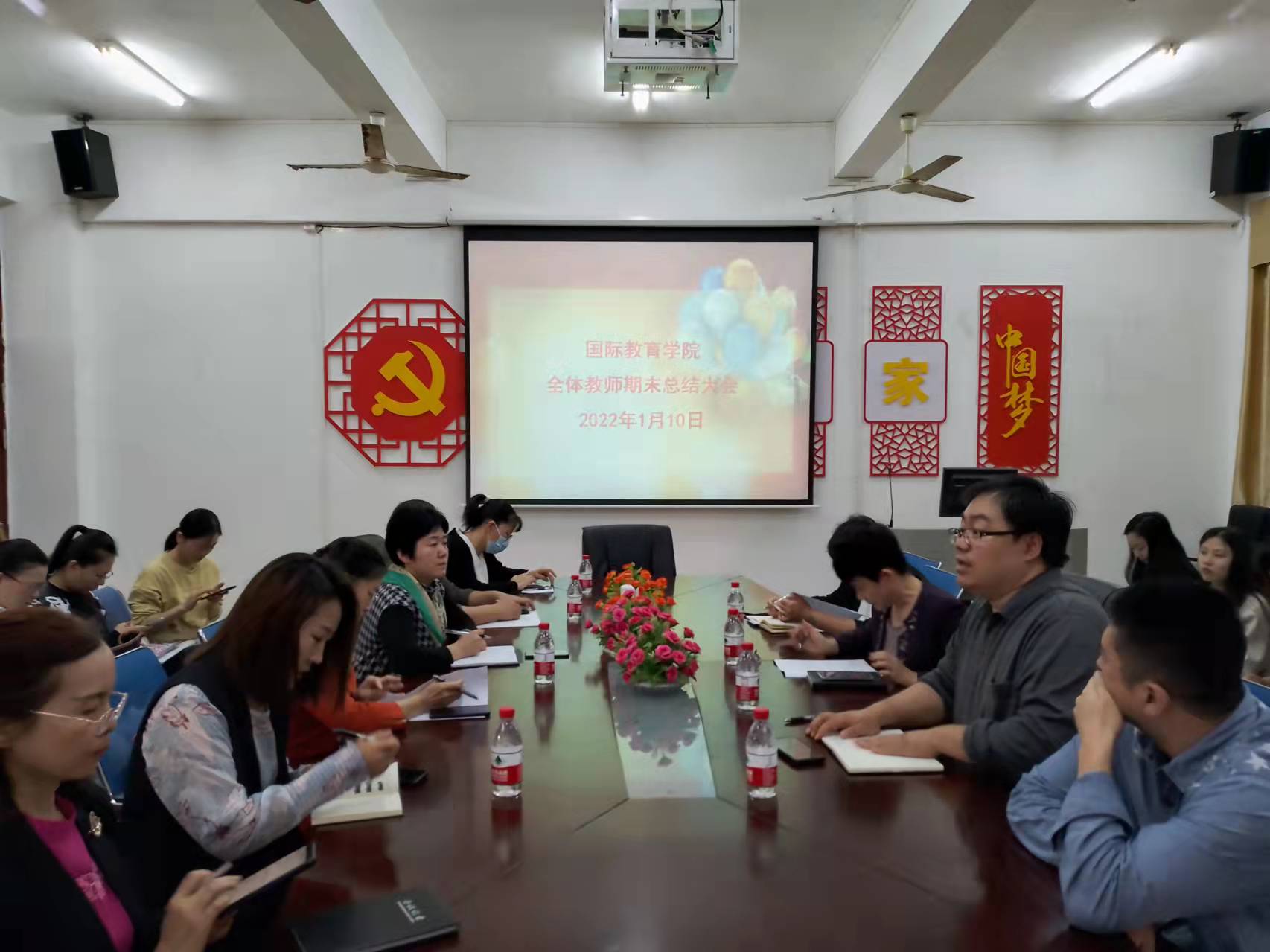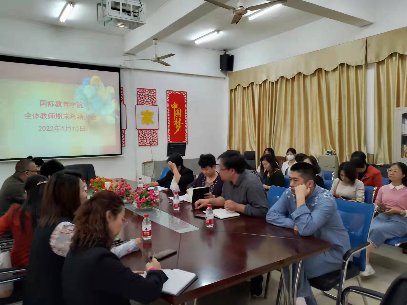 2022年1月10日,国际教育学院在1-323会议室召开全体教师期末总结大会,国际教育学院党总支书记于勇、院长张春玲、副院长黎瑛、副院长韩大伟以及全体教师参加了本次会议。