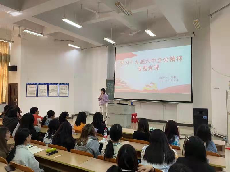 12月7日中午11:40分,国际教育学院学生党支部书记郑艳老师在1-235教室讲授专题党课,为同学们深入解读十九届六中全会精神。全体党员、入党积极分子和入党申请人参加了本次专题党课的学习。