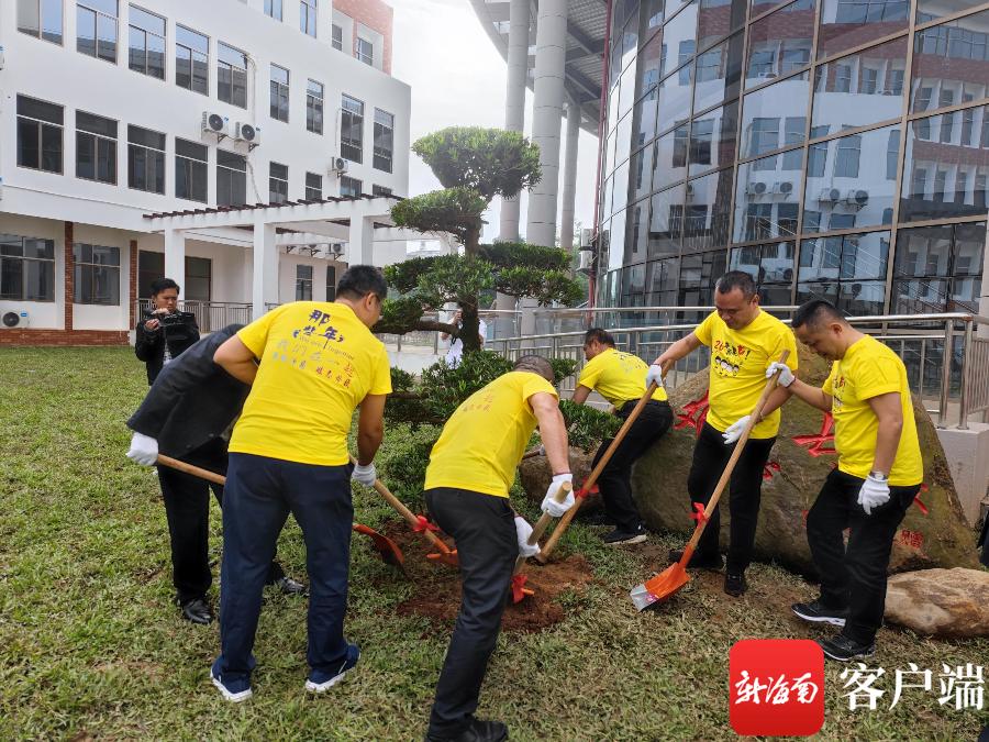 捐赠仪式结束后,校友们还来到新建成的大学生活动中心,挥锹培土,提水浇灌,种下两株罗汉松,共同为校园增添一份绿意,也种下了对母校的深厚情谊。