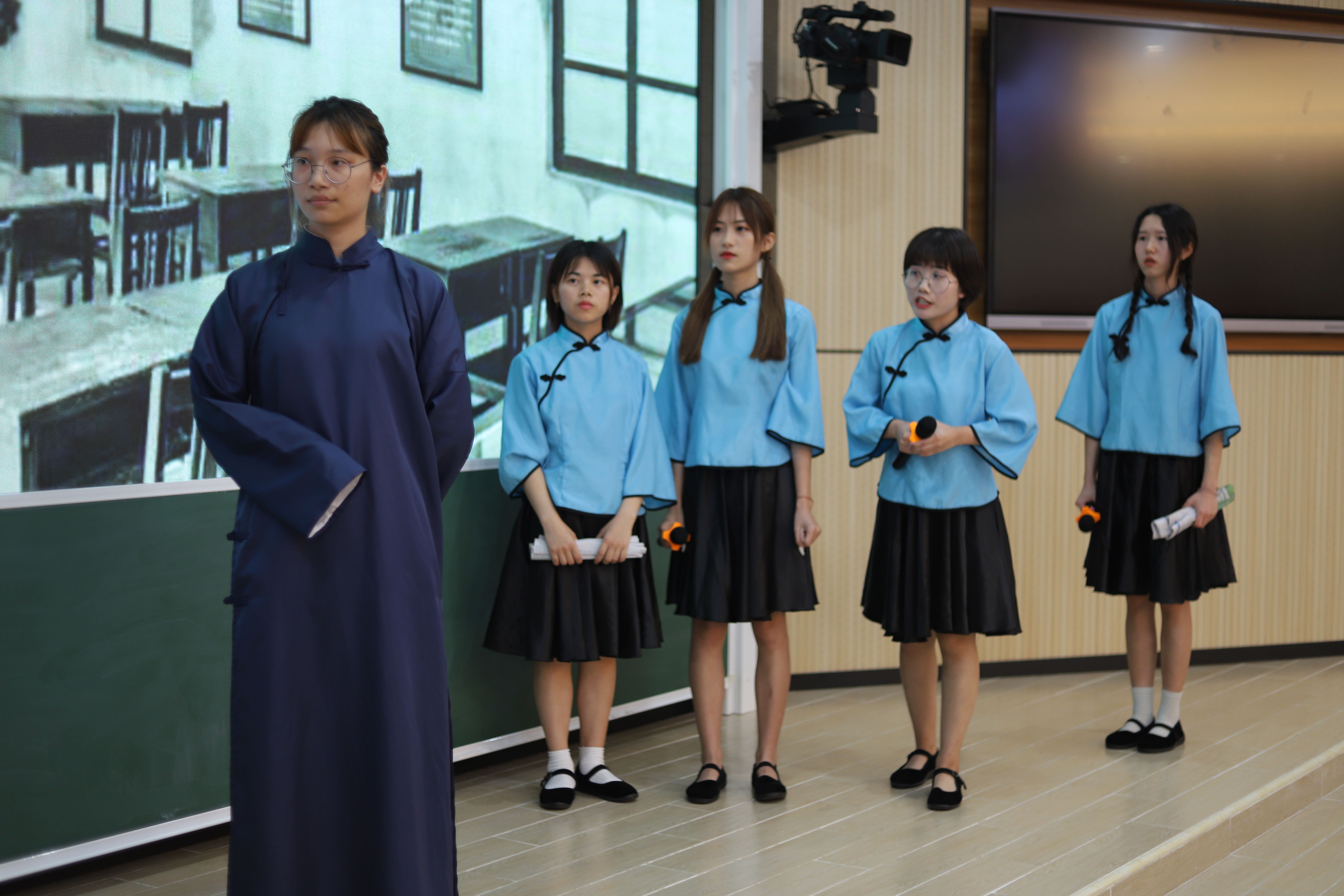 2021年4月20日,国际教育学院学生党支部“感悟百年党史,同心筑梦未来”党史学习教育系列活动之“建党百年华诞之红色经典情景剧大赛”在1-421成功举办。国际教育学院党总支书记于勇、院长张春玲、副院长黎瑛、副院长韩大伟,学工办和教务办全体老师和各班级班主任作为嘉宾和评委参加了本次活动,全体党员、入党积极分子和团学干部在现场观摩。