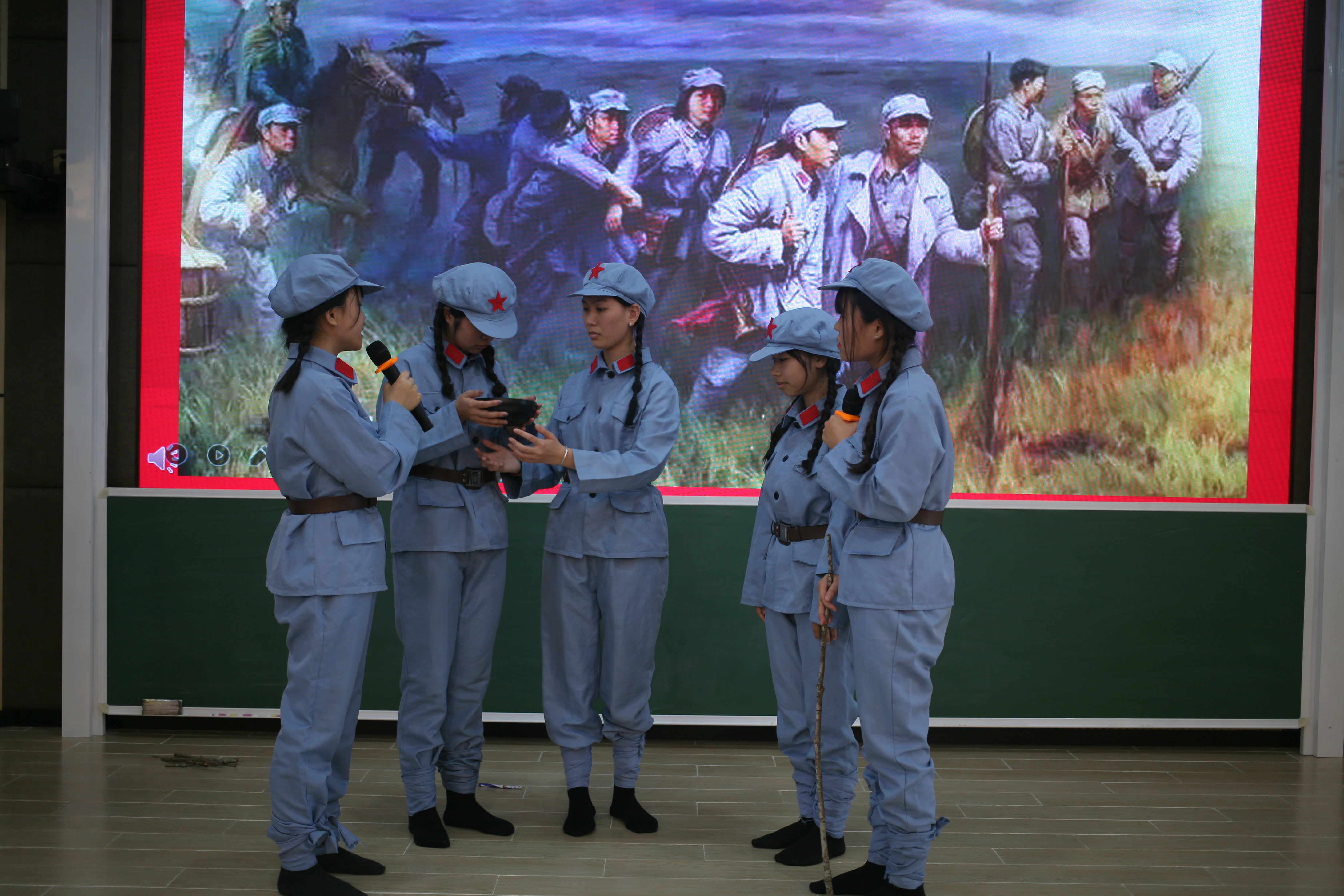 本次比赛历时1个月的准备时间,进入决赛的11支参赛队伍通过自编自导自演的红色经典情景剧,生动再现了共产党人浴血奋战的革命瞬间,重温了共产党人走过的峥嵘岁月,让在场观摩的老师和同学们犹如穿梭在红色时光机,20级商英3班参赛的剧目《红色娘子军》,展现了以琼花为代表的一群女性为争取解放而流血牺牲的动人故事;20级商英5班参赛剧目《万水千山》重现了1935年秋,红军漫漫长征路进入到最艰苦的阶段,一个老班长如何带着一群红军少年用坚强的意志走出草地的感人事迹;19级商英1班和2班参赛剧目《恰同学少年》,带大家感受了1919年5月1日巴黎和会后,北京大学生如何作为先锋,发动了一场为拯救民族危亡、捍卫民族尊严、凝聚民族力量的伟大社会革命运动。经过激烈地角逐,最终《红色娘子军》获得一等奖,《恰同学少年》和《万水千山》获得二等奖,《五四运动—女学生的崛起》、《战火中的大学生》和《绣红旗》获得三等奖,《海娃巧送鸡毛信》等其他5个剧目获得优秀奖。