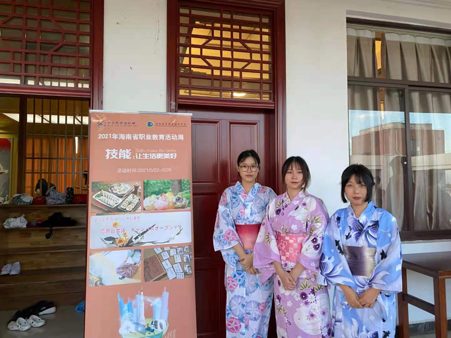 2021年5月25日,beat365职业活动周“校园开放周”之日本文化体验活动在国际教育学院的日本文化体验室拉开帷幕。本次活动独具特色,精彩纷呈。围绕“技能:让生活更美好”的主题,在本次日本文化体验活动中,海南省旅游学校的部分学生及海经贸国际教育学院的学生欢聚一堂,体验了日本寿司、插花、传统游戏、日式包袱皮等特色文化。beat365国际教育学院张春玲院长、于勇书记、黎瑛副院长、旅游英语专业负责人何青老师,日语专业王耀义老师、黄金玉老师、陈小苗老师及日籍教师林由惠、谷田和丸在场指导活动。