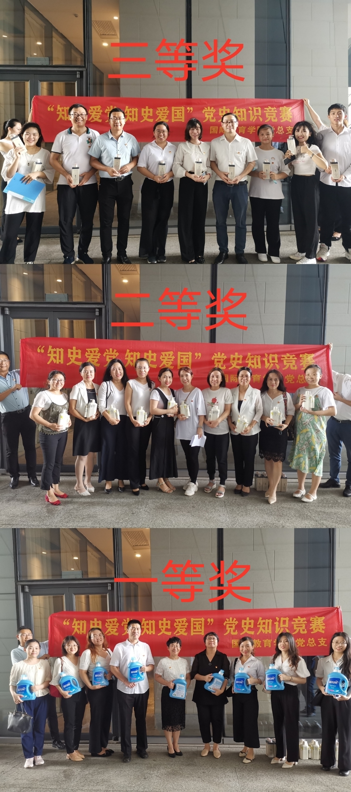 随后,在党史知识竞赛环节中,国际教育学院全体党员共分为三组,每组举手抢答,答对得一分,答错扣一分,最后由记分员统计每组得分,颁发奖品。“没想到党史知识竞赛是这么紧张刺激的!”“太自豪了,我帮我们组拿下了两题!”积极参与其中的老师激动地说道。国际教育学院党总支将用好红色资源,紧扣实际,采取专题学习、教育培训、座谈交流、实地见学等形式,进一步推动党史学习教育深入基层、深入人心,使得全体党员群众真正在红色精神学习中立心铸魂,做到心中有信仰、脚下有力量。