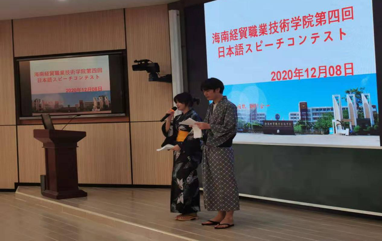 日语演讲开始前,先由主持人刁茂林和介绍评委老师并宣读比赛规则,许伊凡和邹瑞萌同学带来歌曲《红辣椒》为选手应援,期待他们的出色发挥。