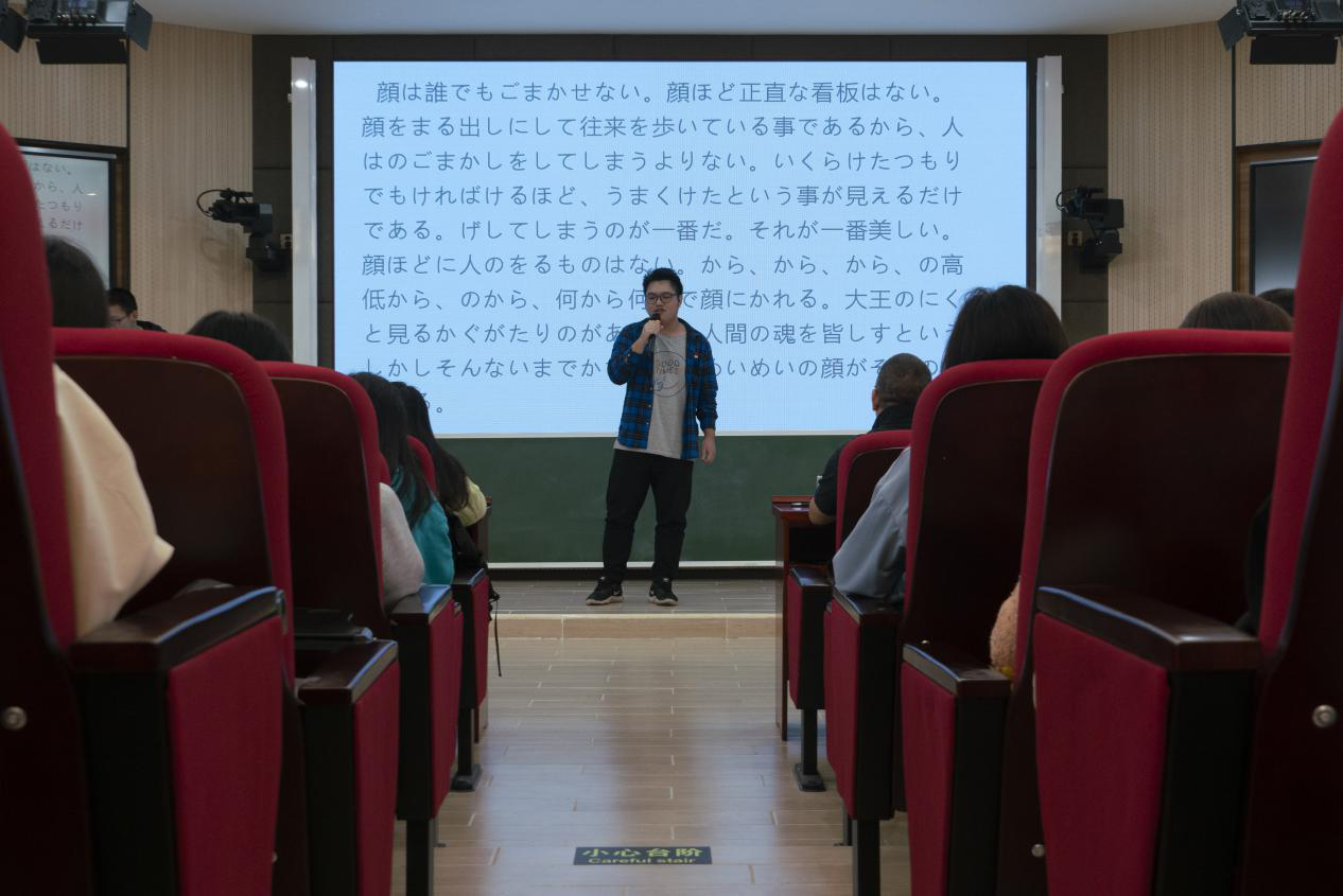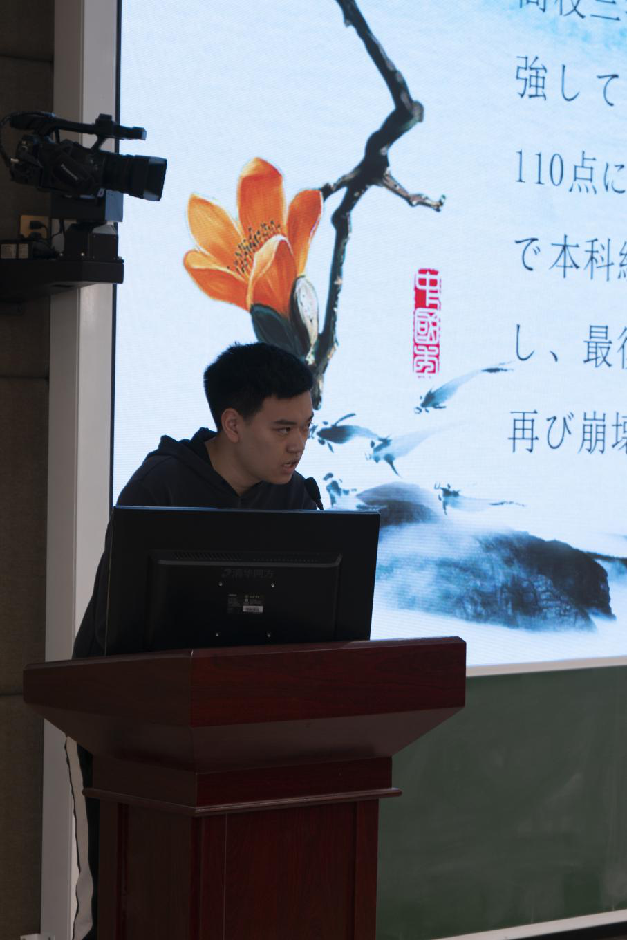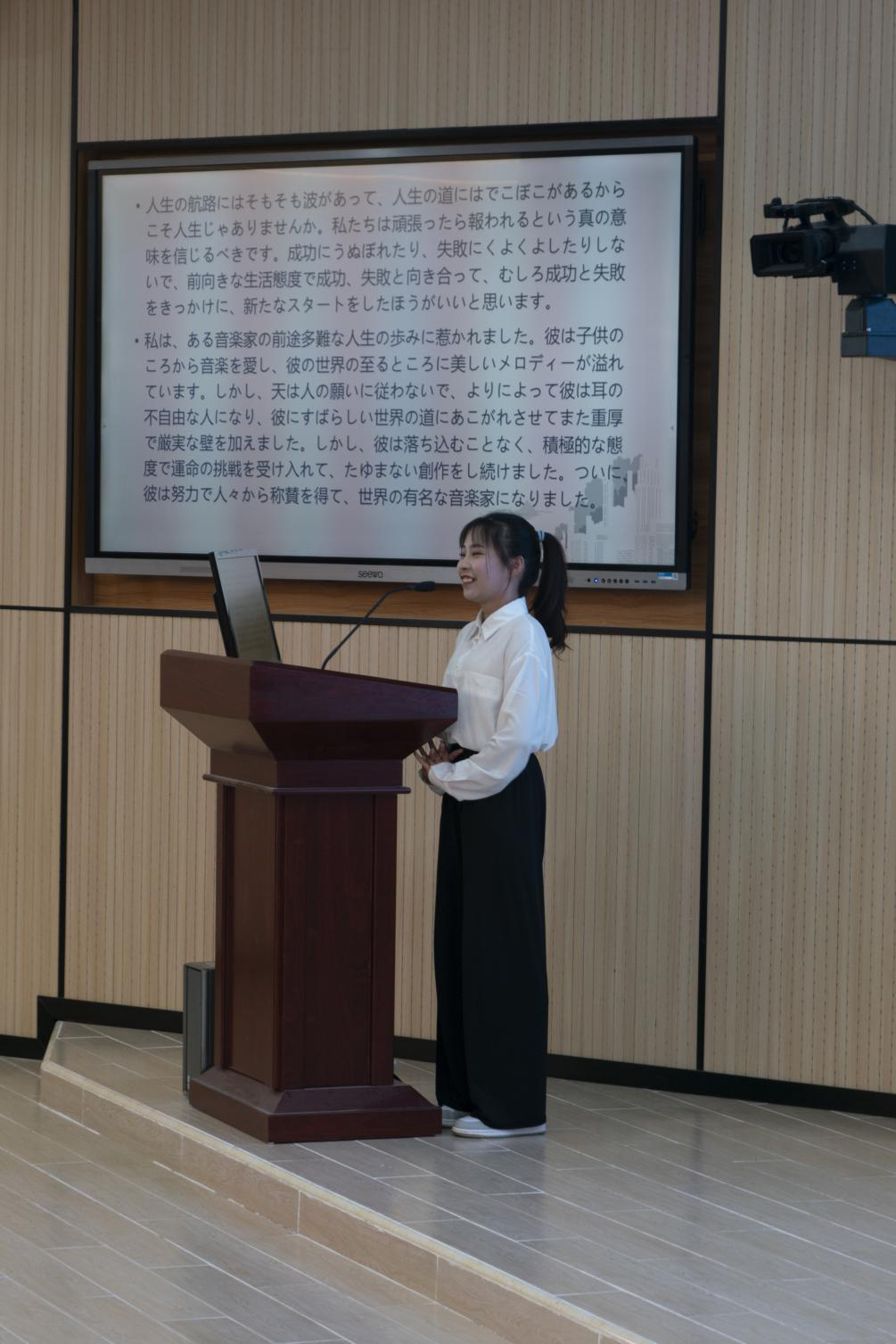 比赛正式开始,刘宁的《負け犬の人生》(败犬的人生),在讲述平凡故事的同时发人深省,耐人寻味;张圆圆的《自信の帆を上げる》(扬起自信的帆),更多给人以激励,看到了勇往直前的希望;潘海柱的《顔》(脸),诙谐幽默却也不乏现实意义;胡毅彬的《空の境界 矛盾螺旋》(空之境界 矛盾螺旋),探讨了一个颇有深度的话题,角度新奇思维独特;鲁顺的《テングの隐れみの》(天狗的隐身蓑衣),声情并茂地将我们代入到扑朔迷离的传说世界,流连忘返;卢雪贤的《おばあさんの手紙》,(奶奶的信)温情四溢,让我们冬天不再寒冷。