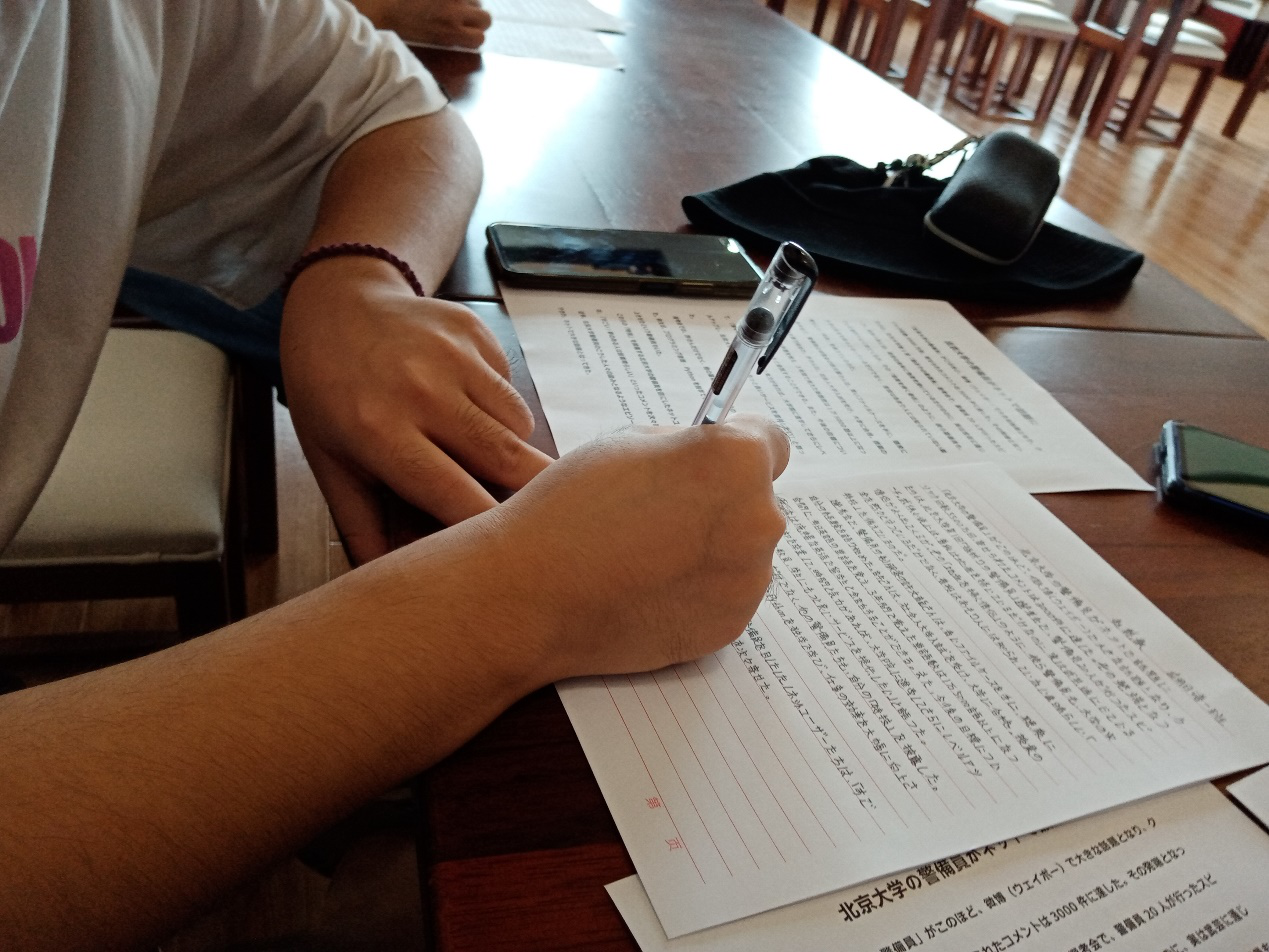 为了让大家深入了解日语,培养学习日语的兴趣,增强对日语文字的认识,近日,国际教育学院举办了“beat365第二届日语书法比赛“。本次比赛的具体形式为比赛选手对日语短文《北京大学の警備員がネットで話題に》进行抄写,抄完后上交致评委老师处等待评选。应邀出席本次比赛的评委有王耀义老师,黄金玉老师及外教HAYASHI YOSHIE老师。