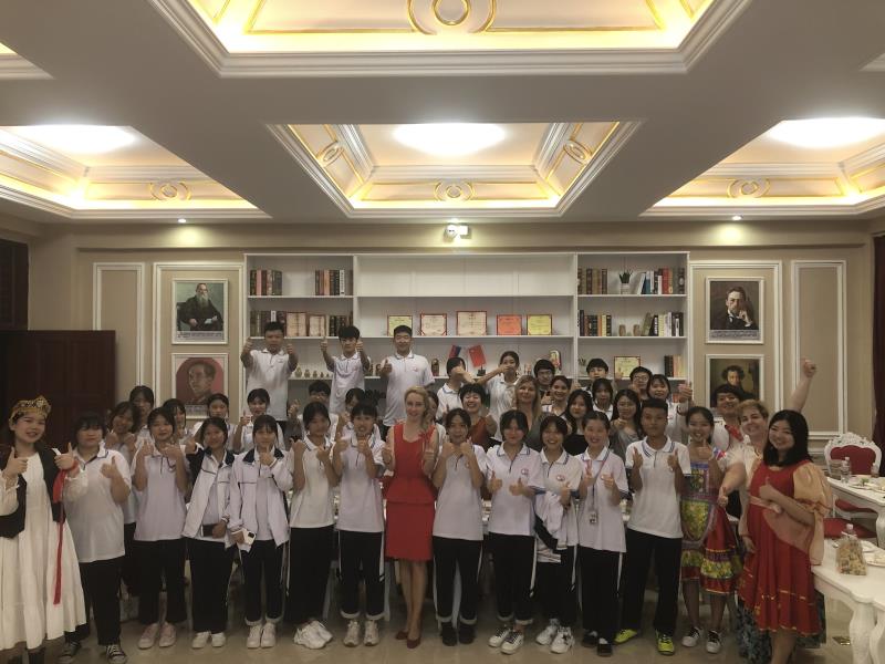 活动开始,由外教娜斯佳和黄老师为同学们介绍俄罗斯经典节日——斯拉夫字母和文化节,国际教育学院各领导莅临参观。