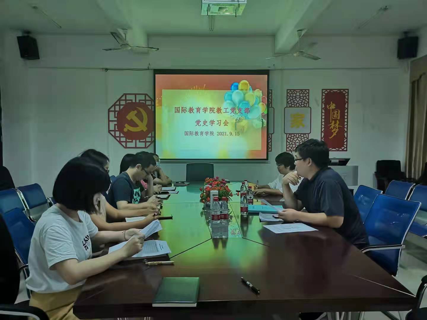 2021年9月15日,国际教育学院教工支部在1-323会议室举办党史学习教育会。国际教育学院副院长黎瑛从“深入学习领会习近平总书记关于党的历史的重要论述,切实增强党史学习教育的政治自觉和行动自觉”;“认真研读党史基本著作,全面了解中国共产党百年奋斗的光辉历程和历史贡献”;“把百年党史与中国巨变联系起来把握,深刻感悟百年党史中国共产党的作为与担当”;“深刻把握党史学习教育的重点要点,不断从党的光辉历史中汲取砥砺奋进的智慧和力量”四个方面作系统宣讲。她强调,思想就是力量。一个民族要走在时代前列,就一刻不能没有理论思维,一刻不能没有思想指引。坚持思想建党,善于运用马克思主义理论兴党强党,是我们党的一大政治优势。十月革命一声炮响,给中国送来了马克思列宁主义。中国先进分子从马列主义的科学真理中看到了解决中国问题的出路。一百年来,我们党坚持解放思想和实事求是相统一、培元固本和守正创新相统一,不断开辟马克思主义新境界,产生了毛泽东思想、邓小平理论、“三个代表”重要思想、科学发展观,产生了习近平新时代中国特色社会主义思想,为党和人民事业发展提供了科学理论指导。正如习近平总书记指出的,我们党的历史,就是一部不断推进马克思主义中国化的历史,就是一部不断推进理论创新、进行理论创造的历史。