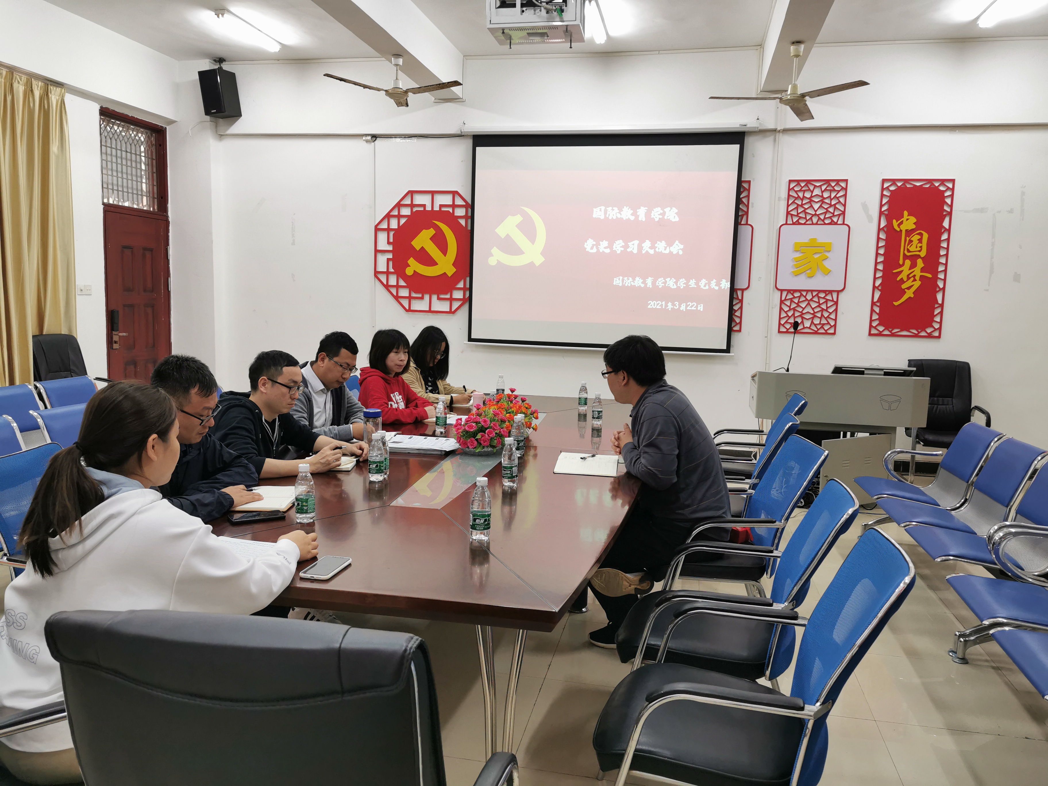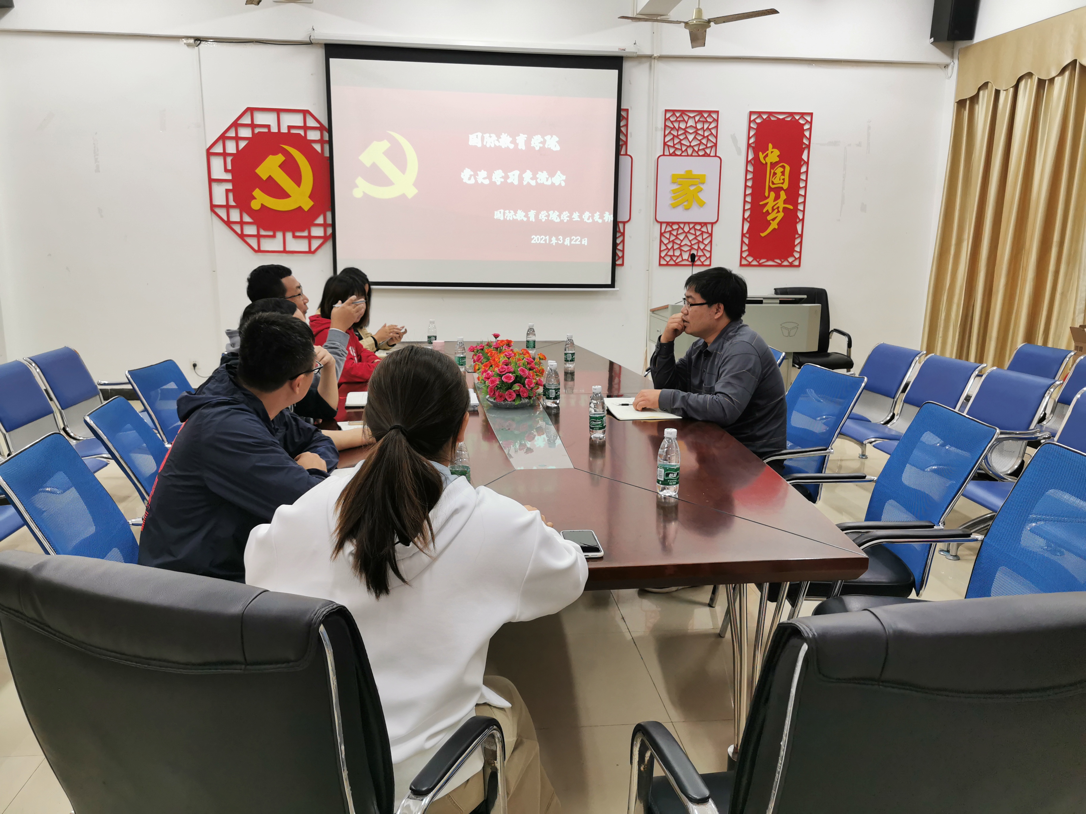 为了使全体党员进一步明确党史学习的重要意义,使党的奋斗史和新中国发展史深入人心,党史学习教育入脑入心。国际教育学院学生党支部3月22日上午9点在1-323国际教育学院党员之家开展了“学党史、促发展”学习交流会。会议由支部书记郑艳主持,党总支书记于勇和支部全体党员参加了本次会议。