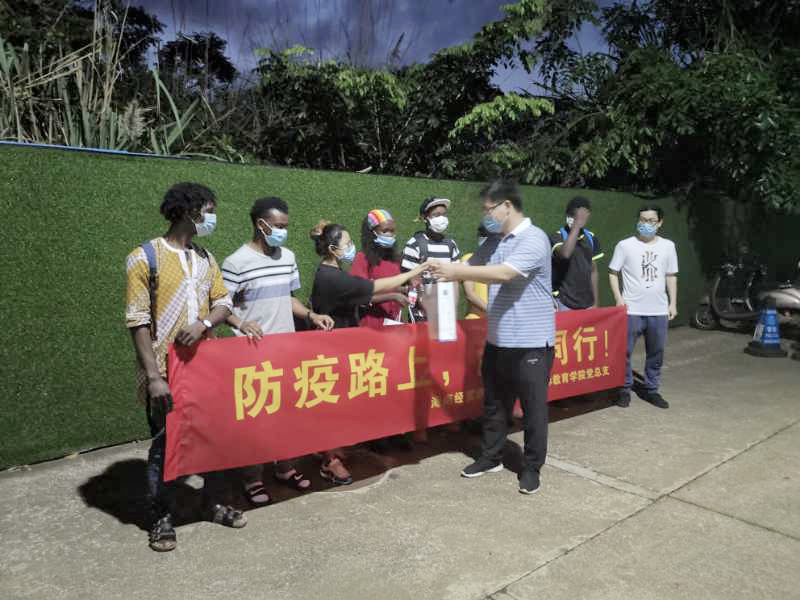 2020年4月30日下午,国际教育学院党总支副书记兼副院长于勇带领辅导员黄银亮、史付田、肖意、孔凯、郑昭艳等共同前往国际学生宿舍收拾32间宿舍物品并检查水电等安全工作,并看望慰问从假期开始一直待在海南的部分国际学生。