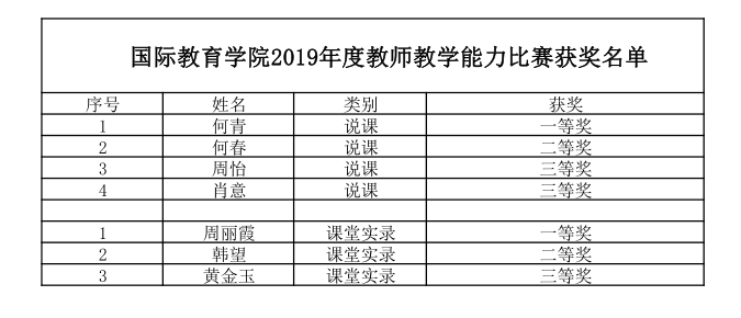 国际教育学院2019年度教师教学能力比赛获奖名单