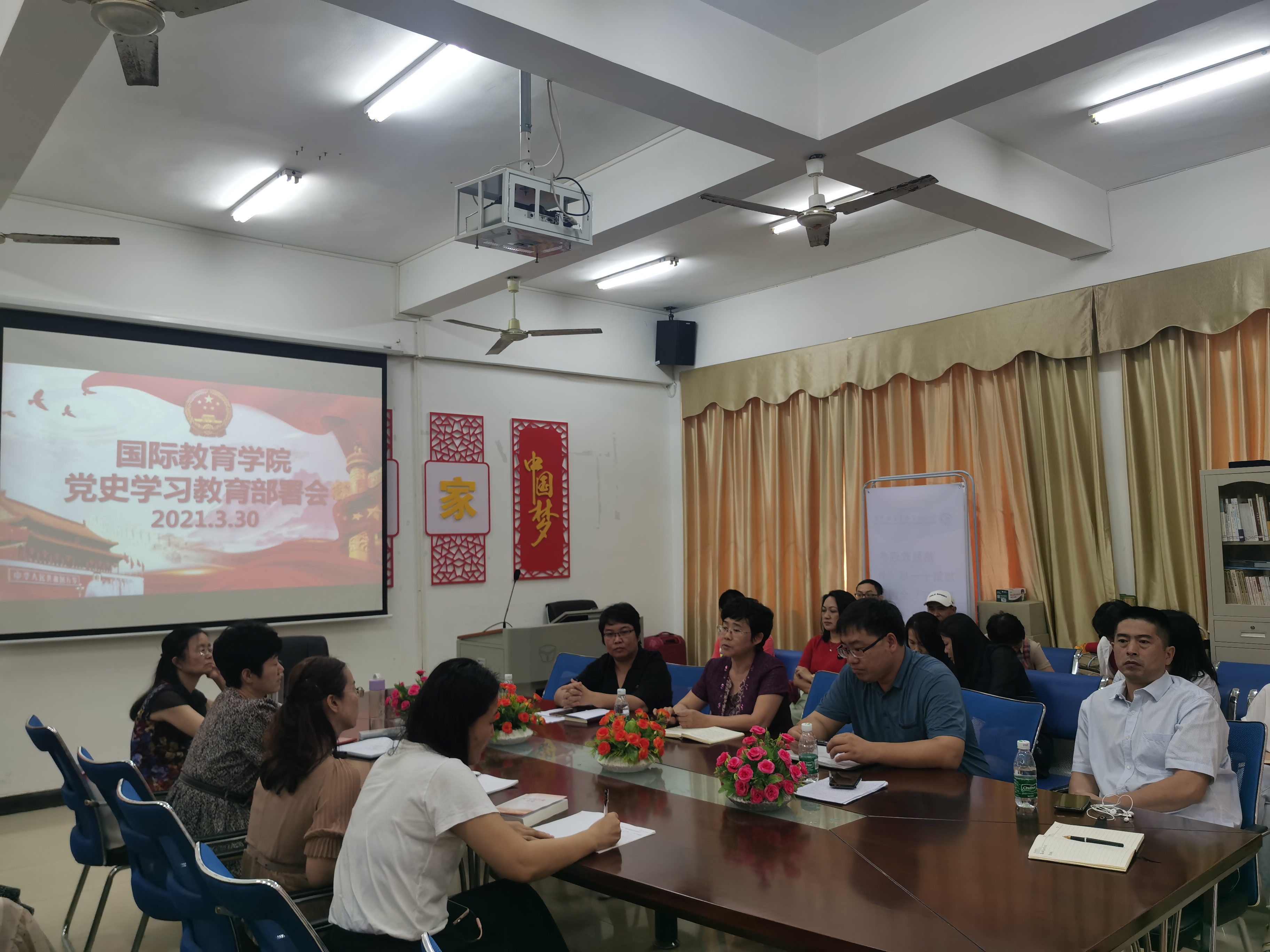 为学习贯彻习近平总书记在党史学习教育动员大会上的重要讲话精神和中央、省委、学校的决策部署,深入开展“四史”学习教育,进一步增强全院教职工的使命感和责任感,3月30日,国际教育学院党总支召开党史学习教育部署会议,安排部署党史学习教育工作。国际教育学院全体教职工参加会议。