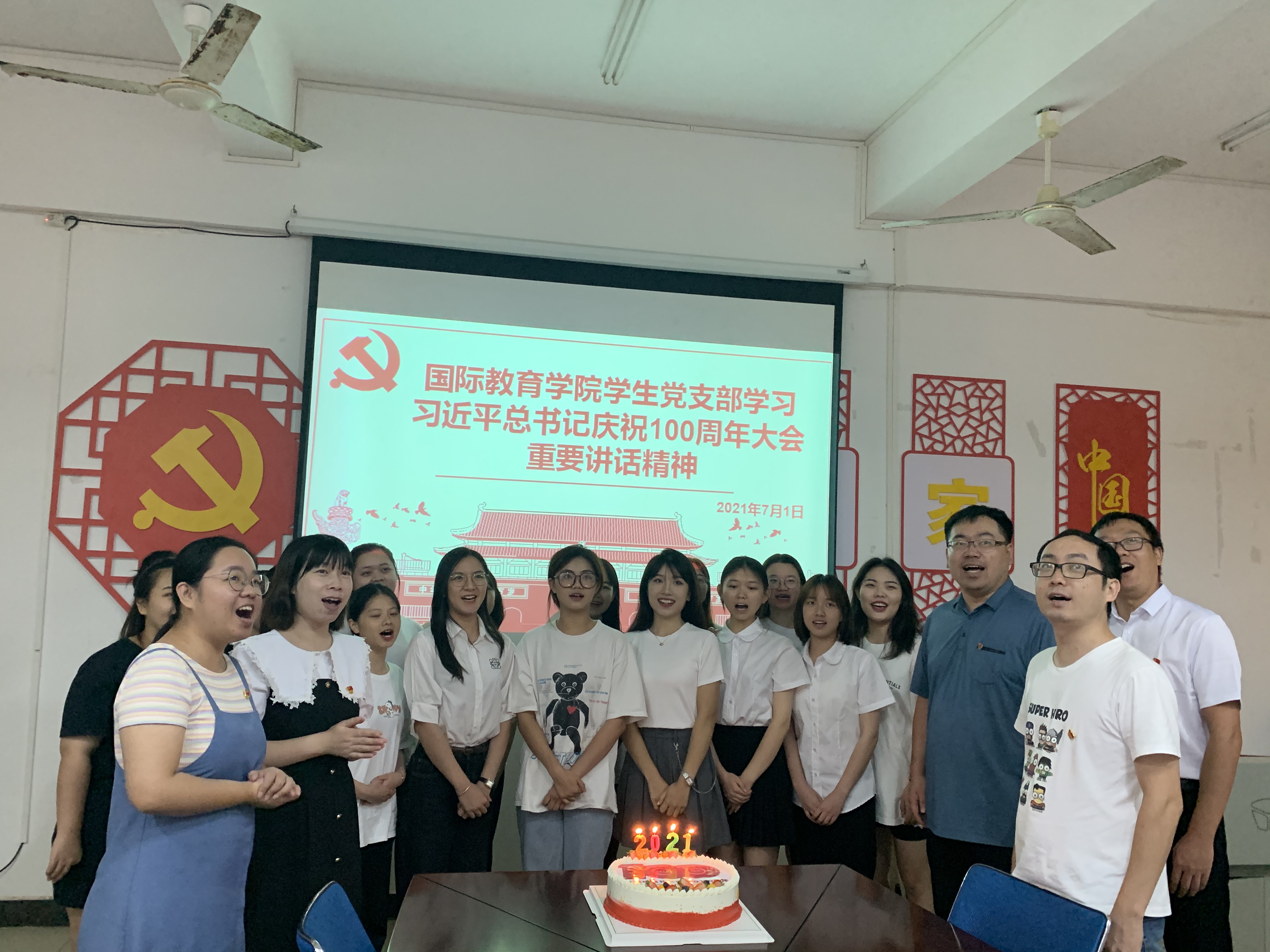 最后,大家一起围聚在精心为党准备的100岁生日蛋糕,点燃生日蜡烛,唱响经典红歌,为党的生日送上祝福。