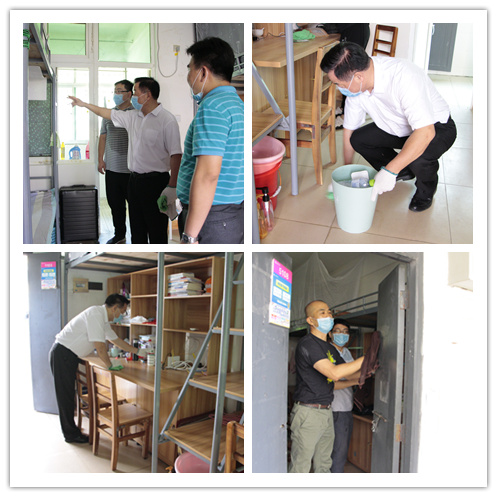 开窗通风透气,整理归置物品,扫地抹桌子、清扫垃圾……在36℃的高温天气下,领导和老师们撸起袖子,有的在擦洗漱台,有的在拖地,有的在清理垃圾,干得热火朝天、汗流浃背。清理过后,全院一百多间宿舍的书桌物品摆放整整齐齐,床、柜、桌、椅和地面都被擦拭得干干净净,发霉变质的食物、空饮料瓶等垃圾被清理丢弃。