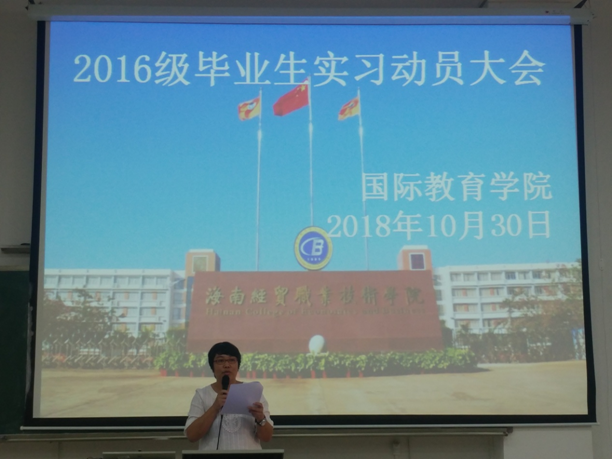 10月30日下午5时,国际教育学院召开2016级毕业生实习动员大会,张春玲院长、国际教育学院党总支临时负责人兼副院长于勇、黎瑛副院长、毕业班实习导师、辅导员参加本次实习动员大会。