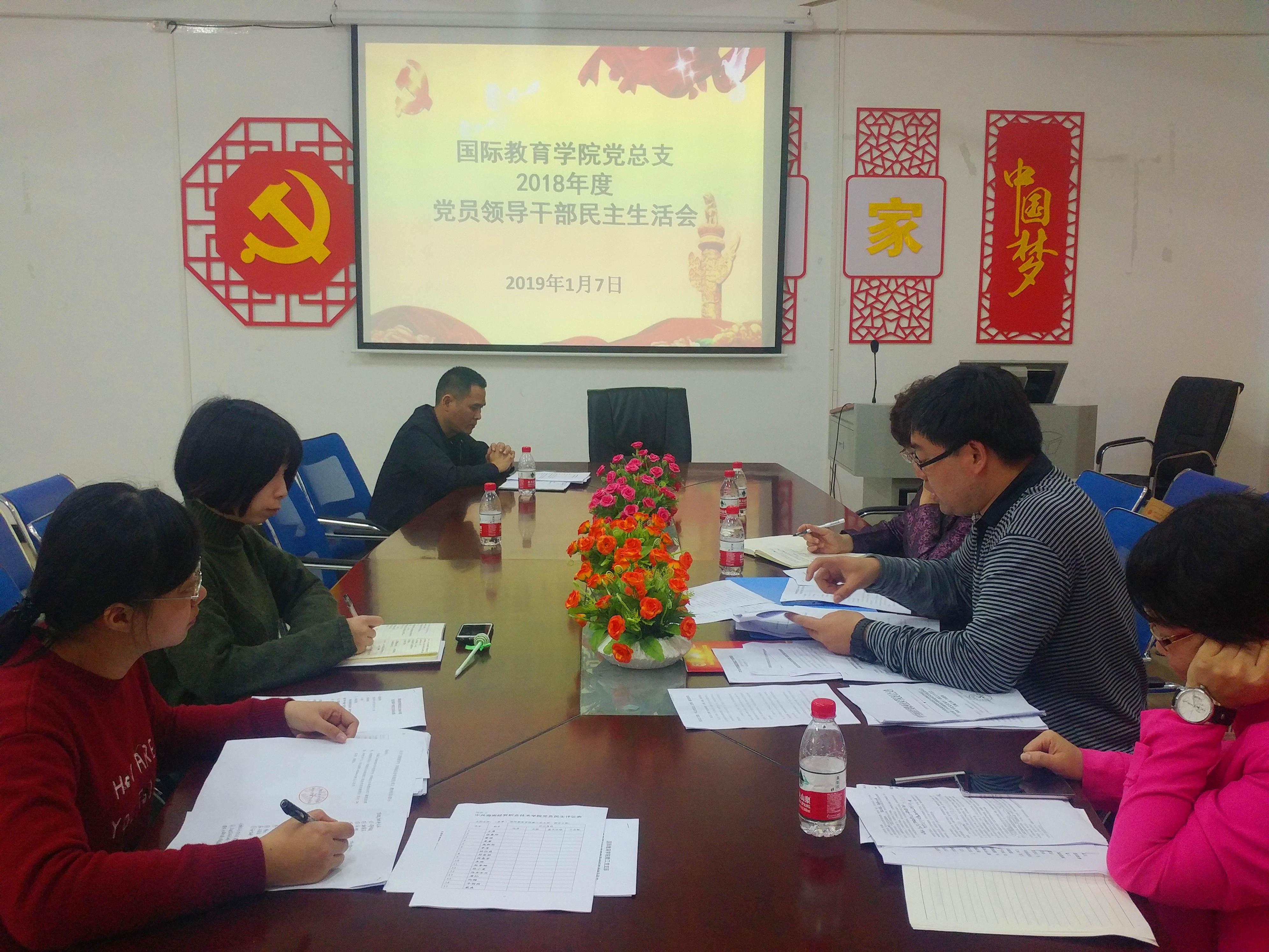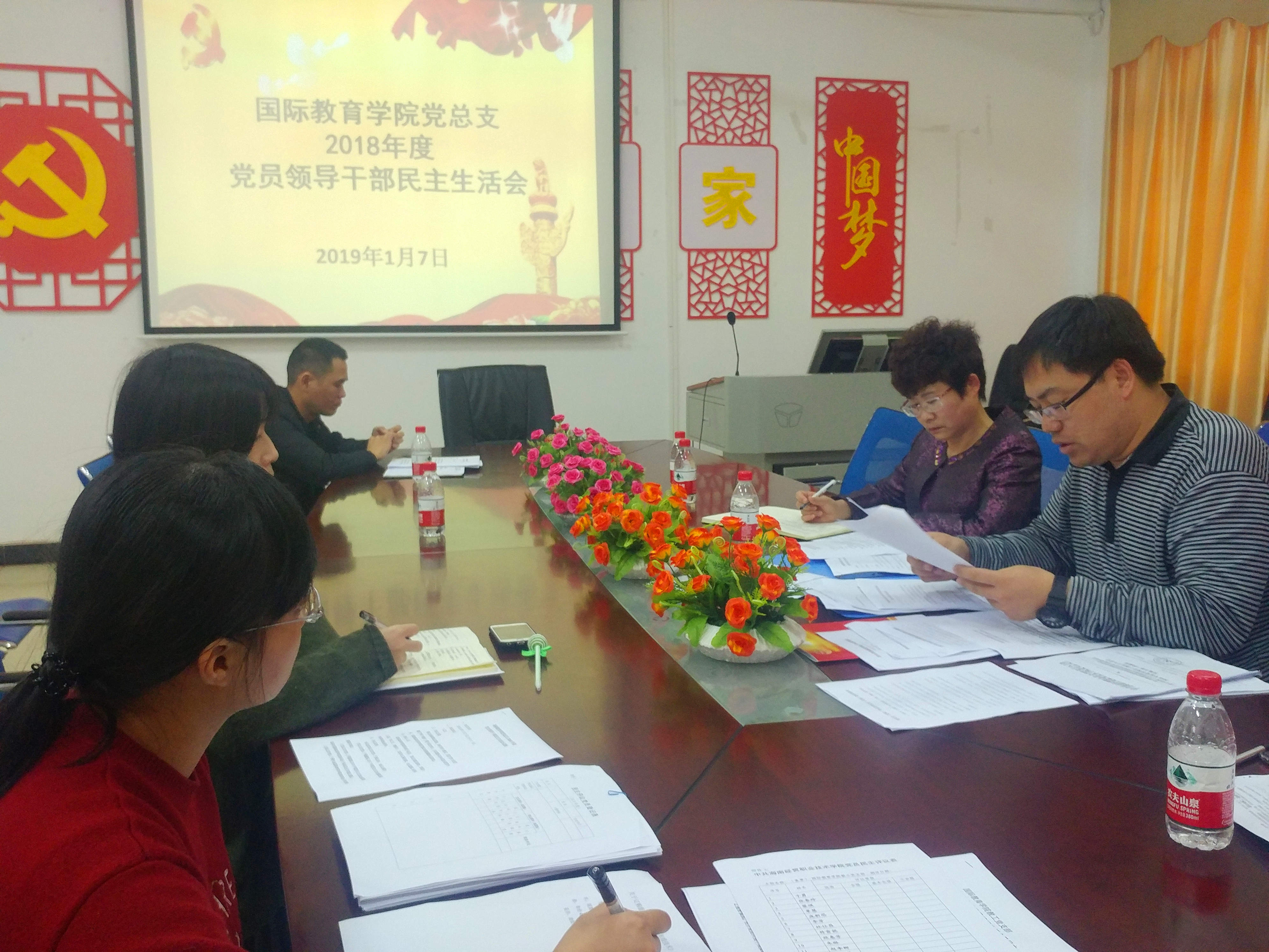 2019年1月7日下午,国际教育学院召开2018年度党员干部民主生活会,国际教育学院党总支临时负责人兼副院长于勇、国际教育学院院长张春玲、副院长黎瑛及党员干部参加本次民主生活会。