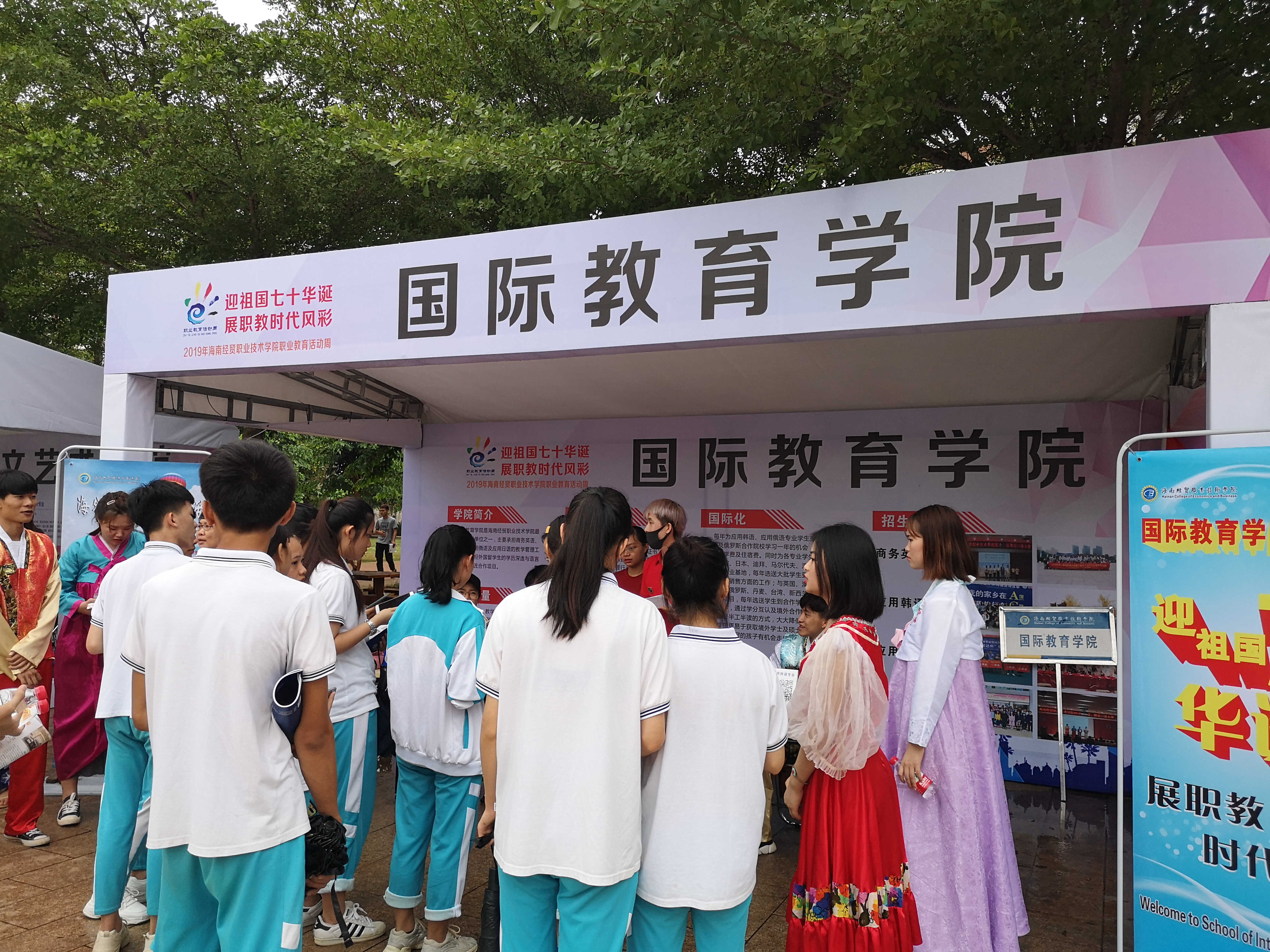 国际教育学院充分展示了我院的国际化风采,国际学生和中国学生积极参与本次活动,应用韩语专业、应用日语专业和应用俄语专业的学生分别穿着韩服、和服、俄罗斯特色服装,教师及学生志愿者们向前来咨询的同学们进行解答,畅聊英日韩俄各国语言。