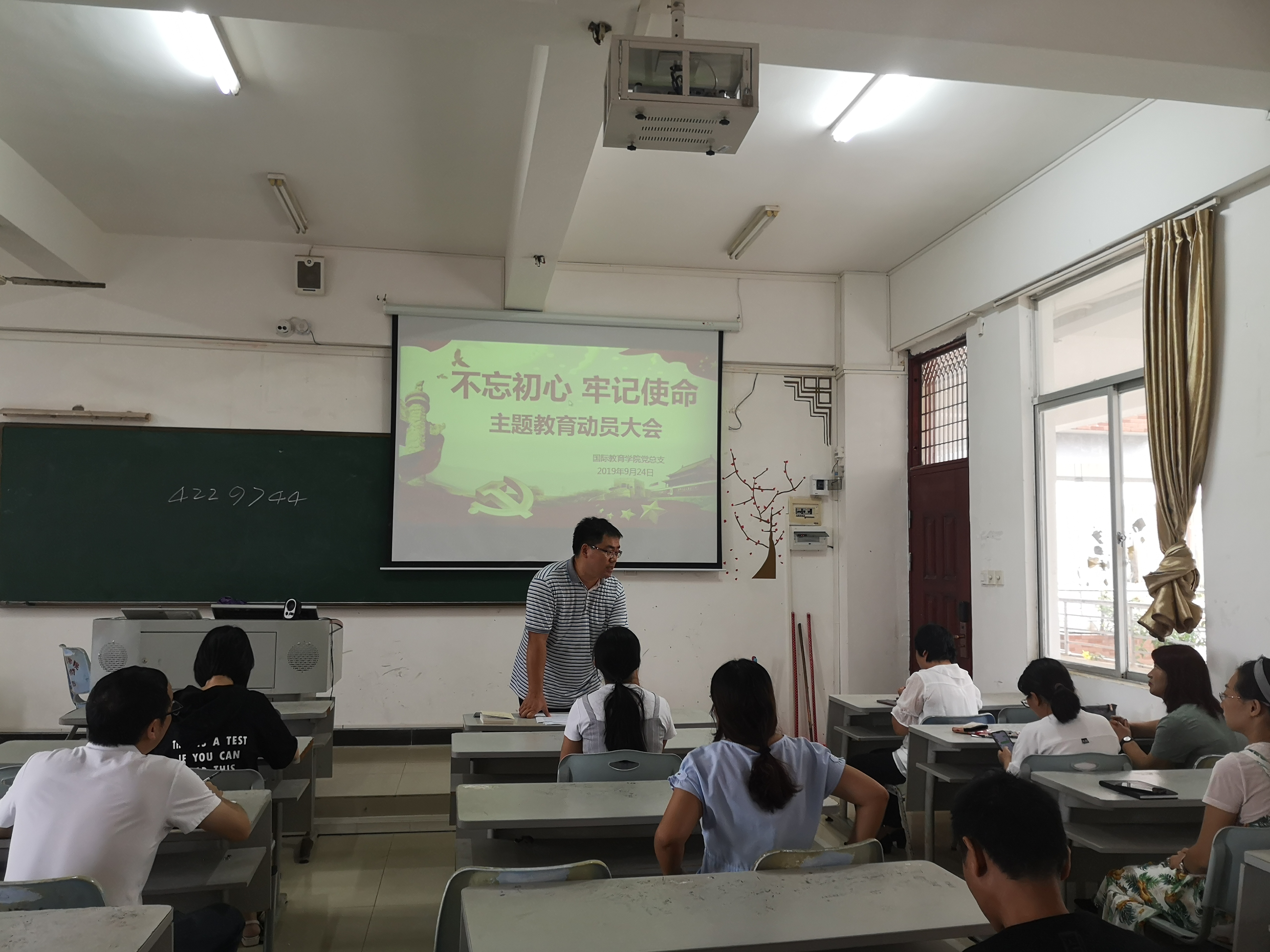 2019年9月24日,beat365国际教育学院党总支召开“不忘初心、牢记使命”主题教育动员部署会,深入学习贯彻习近平总书记在中央“不忘初心、牢记使命”主题教育工作会议上的重要讲话精神,传达海南省委主题教育第二批部署会议和省委第九巡回指导组动员大会和学校党委会议精神,切实按照第二批主题教育的指导要求,对全员开展主题教育进行动员部署。