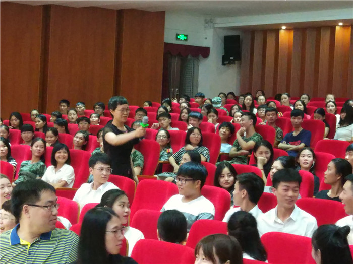 会上,党总支覃慧书记给新生介绍了学校基本情况和校园环境。从中学时代走来,每一个大学新生所面临的都是一个全新的世界,无论是自然环境还是学习方法,无论是个人目标还是社会期望,都发生了很大的变化。为让新生尽快适应全新环境,覃书记进行了题为“平安是最大的智慧”的专题讲座。讲座分别从“大学生将面临多种不适应”和“学会保护自己”等方面,要求新生要正确认识角色的改变、主动适应全新环境、建立良好人际关系及培养生活自理能力。同时要求新生要让安全成为大学生的一种习惯,学会从预防犯罪到预防受害、善于发现坏人、防范传销及网络诈骗、防范台风、雷电等自然灾害等。同时要求全体新生要积极参加培育和践行社会主义核心价值观活动,覃书记寄语全体新生在大学里要善于与人相处、学会感恩、学会倾听、有效学习,希望全体新生以满腔的热情,饱满的精神投入到大学的学习生活中。互动环节中新生踊跃参与、气氛热烈,他们的即兴演唱传递了全体新生对学校的感激之情。最后,学工办、团总支为新聘的辅导员助理、团学干部颁发了聘书。