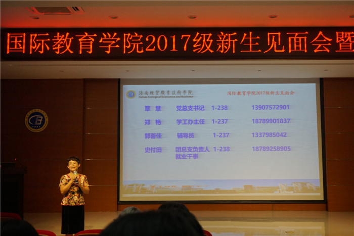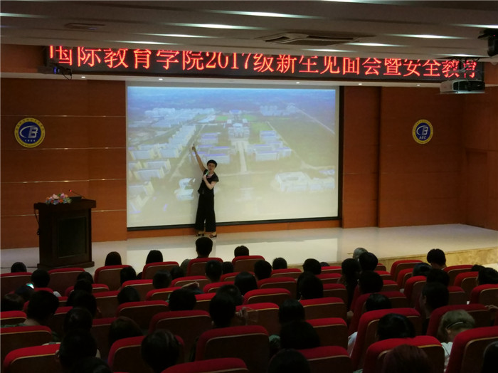 (国际教育学院报道)为了让2017级新生尽快适应环境,调整好心态,9月11日晚上,国际教育学院党总支在经贸宾馆报告厅举办了2017级新生见面会暨安全教育专题讲座。