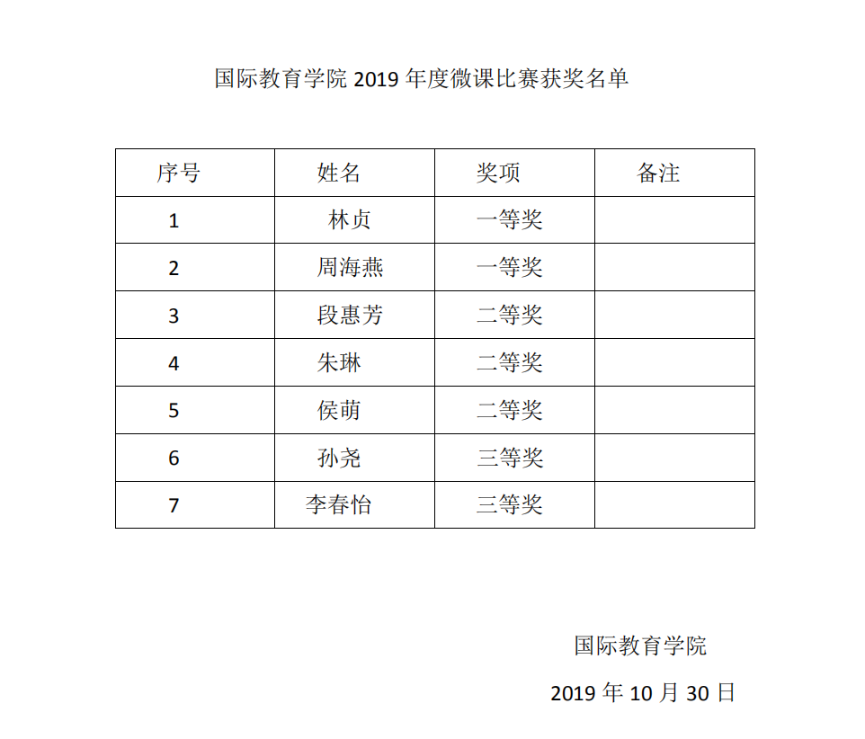 2019年度国际教育学院微课比赛获奖名单公告