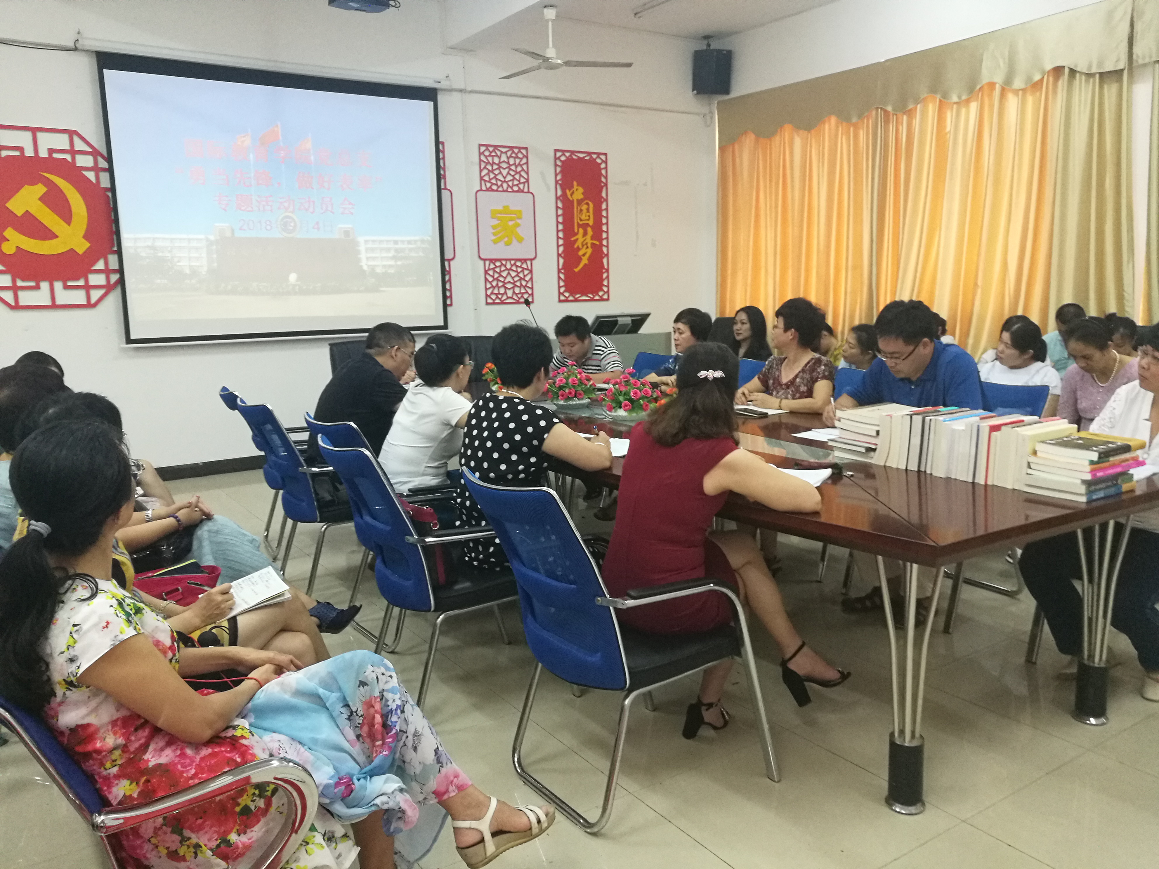 党总支副书记杨葵介绍了学校党委《关于开展“在建设海南自由贸易区(港)实践中勇当先锋、做好表率”专题活动实施方案》,布置了工作整改台账和具体工作任务。