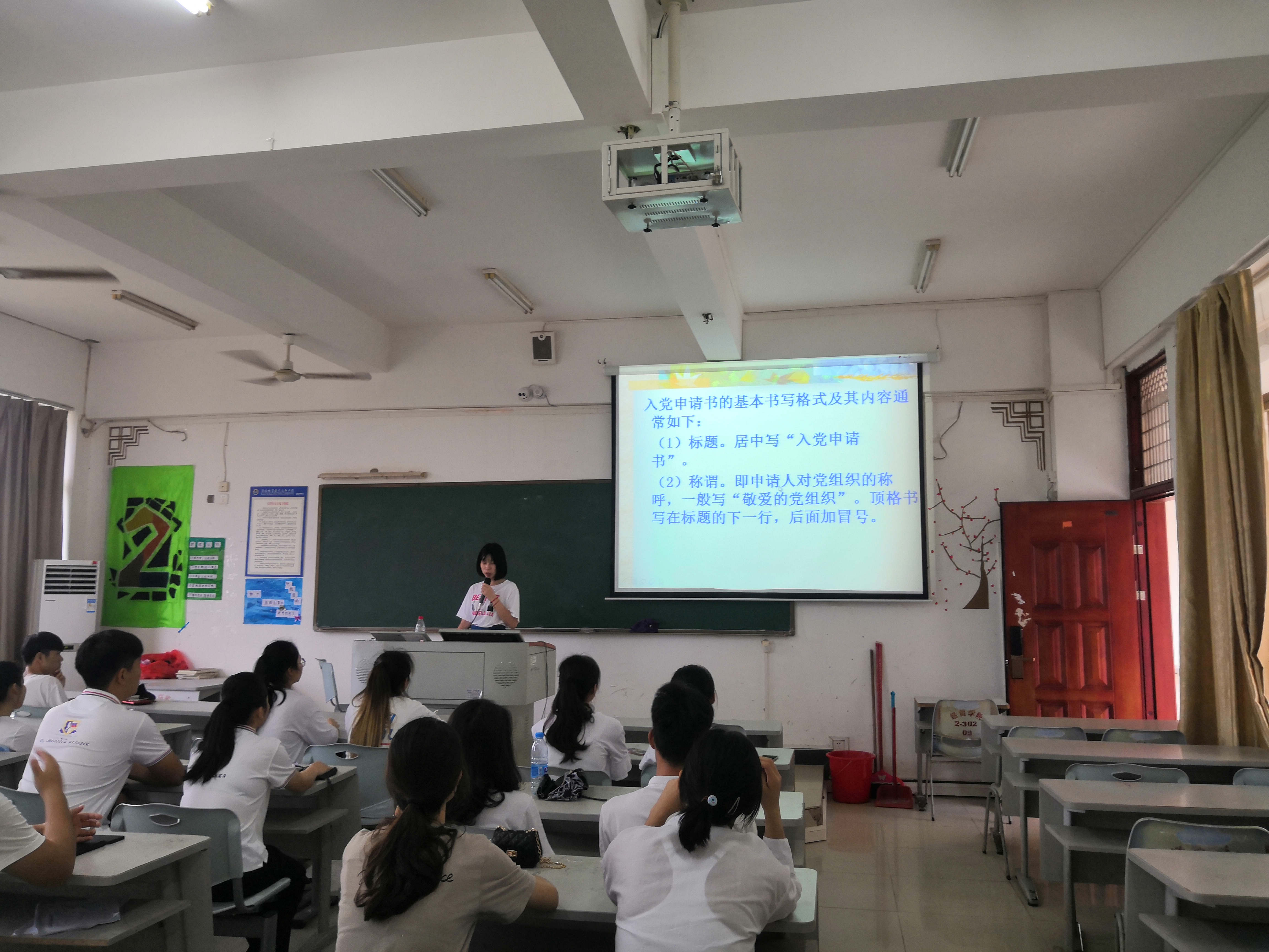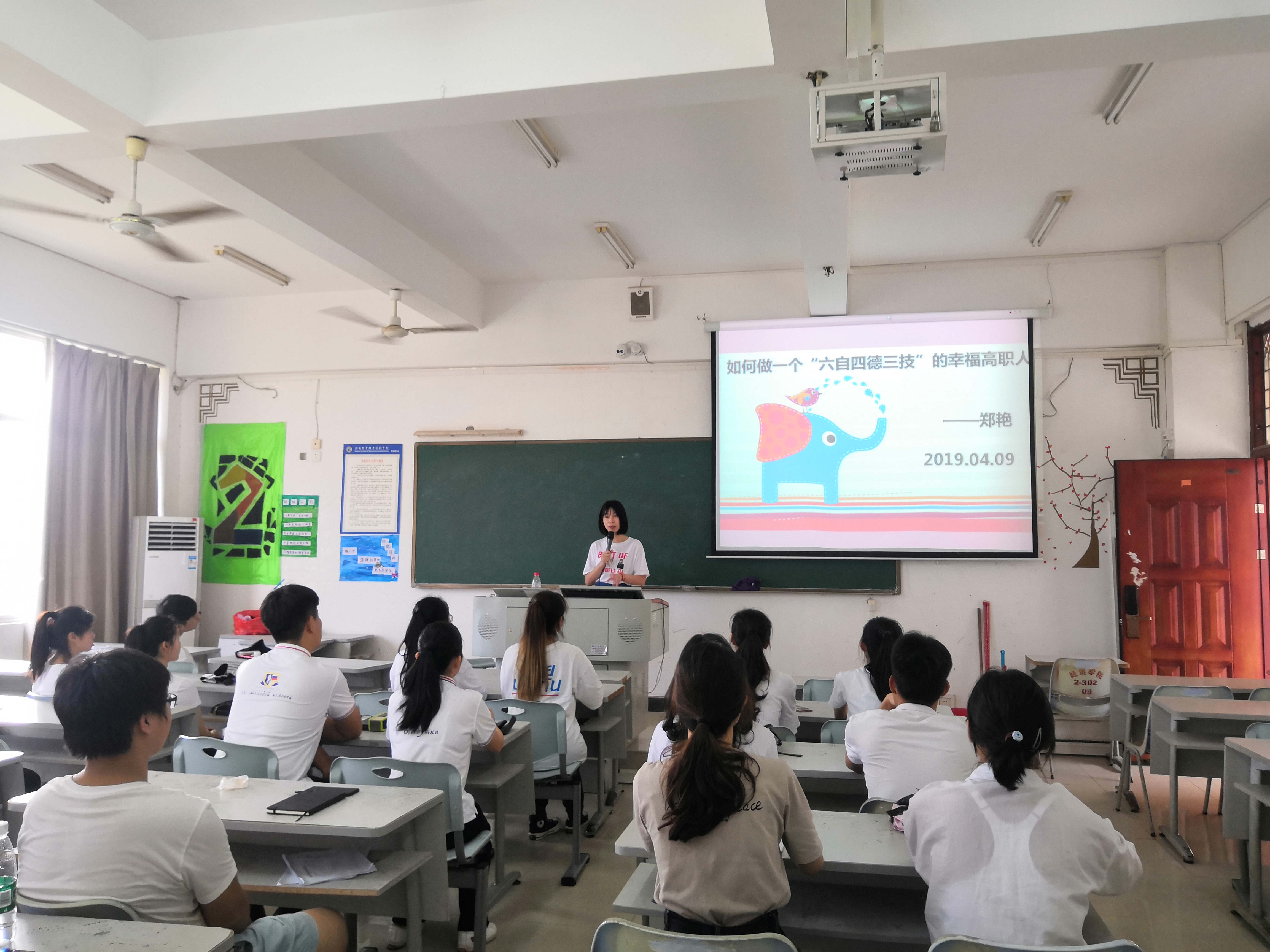 4月9日下午4点,国际教育学院学生党支部书记郑艳在1-302教室为支部全体党员和入党积极分子做了一堂《如何做一个“六自四德三技”的幸福高职人》的专题党课。
