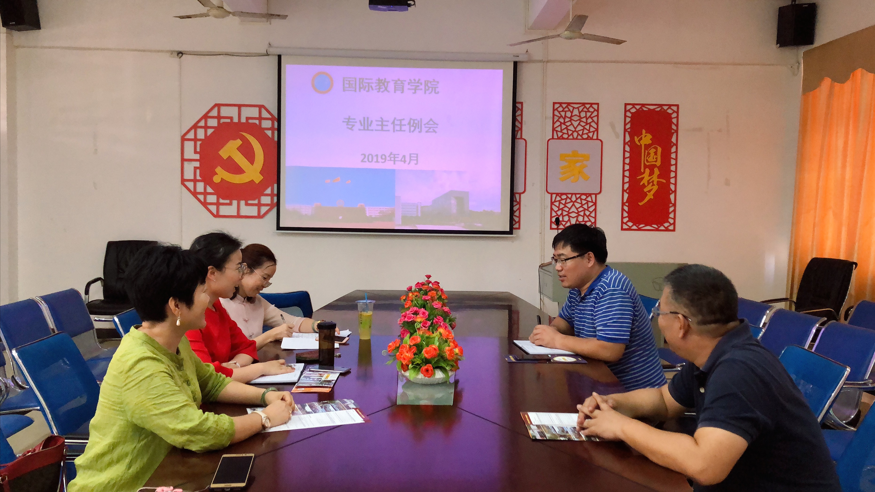 4月11日中午,国际教育学院党总支负责人兼副院长于勇主持召开了国际教育学院专业负责人例会,商务英语主任刘莉老师、应用日语专业主任王耀义老师、应用俄语专业主任周丽霞老师、应用韩语专业主任刘倩老师参加本次会议。