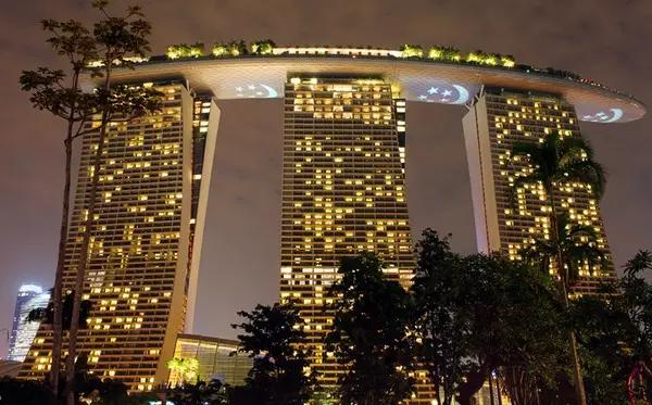 金沙酒店的相关情况:美国拉斯维加斯金沙集团在新加坡投资兴建的星星综合豪华娱乐城,由三座55层高的平顶大厦组成,顶部为一船形建筑物连接,旁边有一莲花形的博物馆,顶部设计具有收集雨水的功能,并形成漂亮的瀑布群,正面面临滨海湾,酒店隔壁为新家坡最大的植物园,环境宜人,是新加坡地标性的建筑。