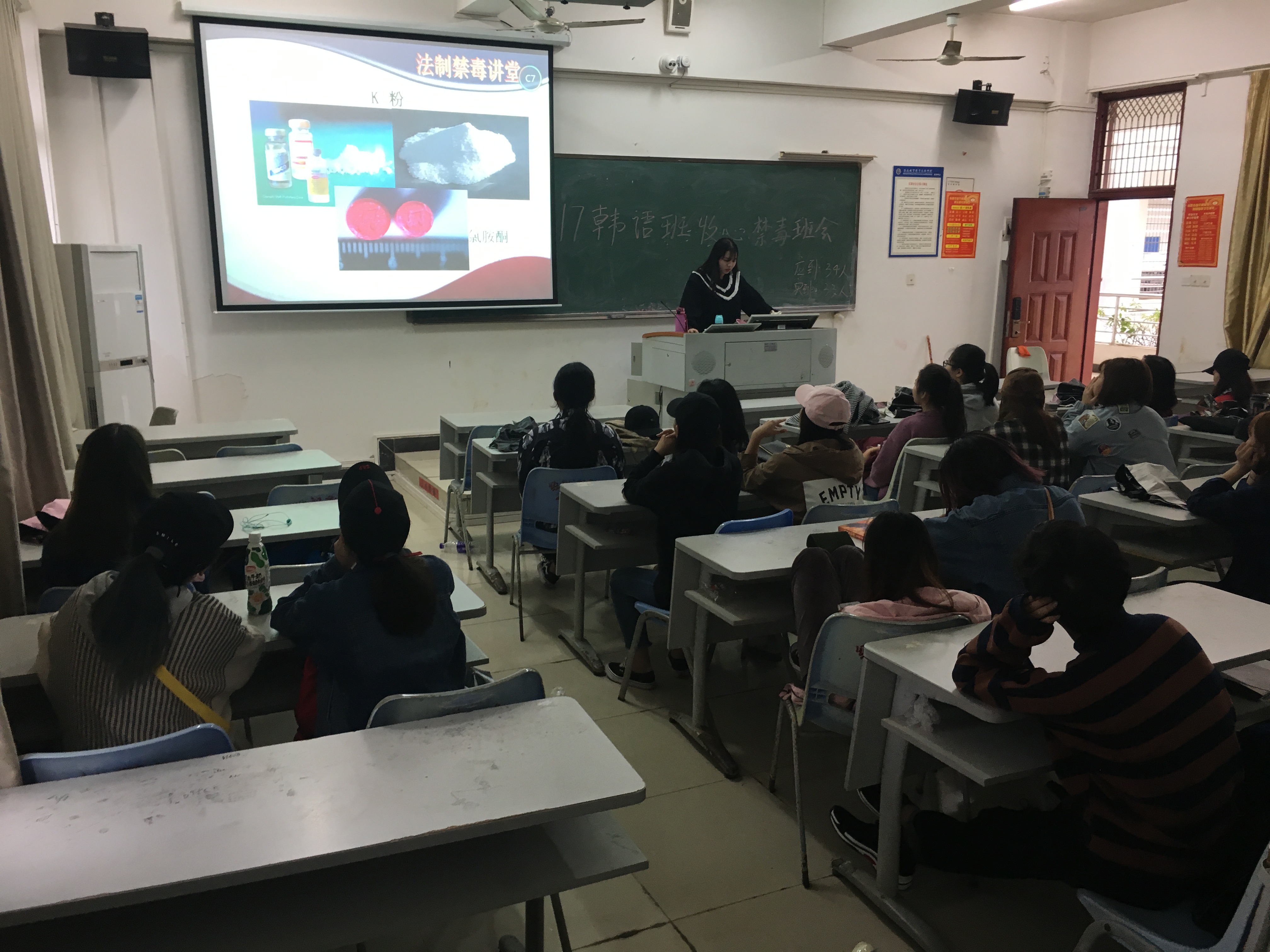 为了让同学们更深刻地了解毒品危害,增强防毒、识毒、拒毒意识,提高同学们抵制毒品侵袭的能力,3月8日晚7点-10点,国际教育学院在学工办指导下,按照学校学工处的要求,在1-421和1-601等教室中开展了以“珍爱生命 远离毒品”为主题的教育活动。
